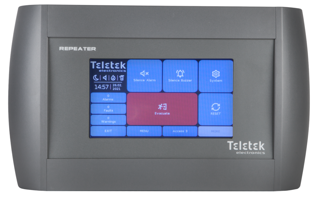 Teletekin Repeater TFT käyttölaite toistaa SIMPO- ja IRIS-osoitteellisten keskusten antamat tiedot, tarjoaa reaaliaikaista seurantatietoa tiloista ja mahdollistaa ohjelmoinnin sekä laiteohjelmiston päivityksen. Yhteys käyttölaitteen ja keskuksen välillä on toteutettu käyttämällä redundanttia verkkomoduulia, joka perustuu RS485-liitäntään tai tavalliseen LAN-verkkoon.